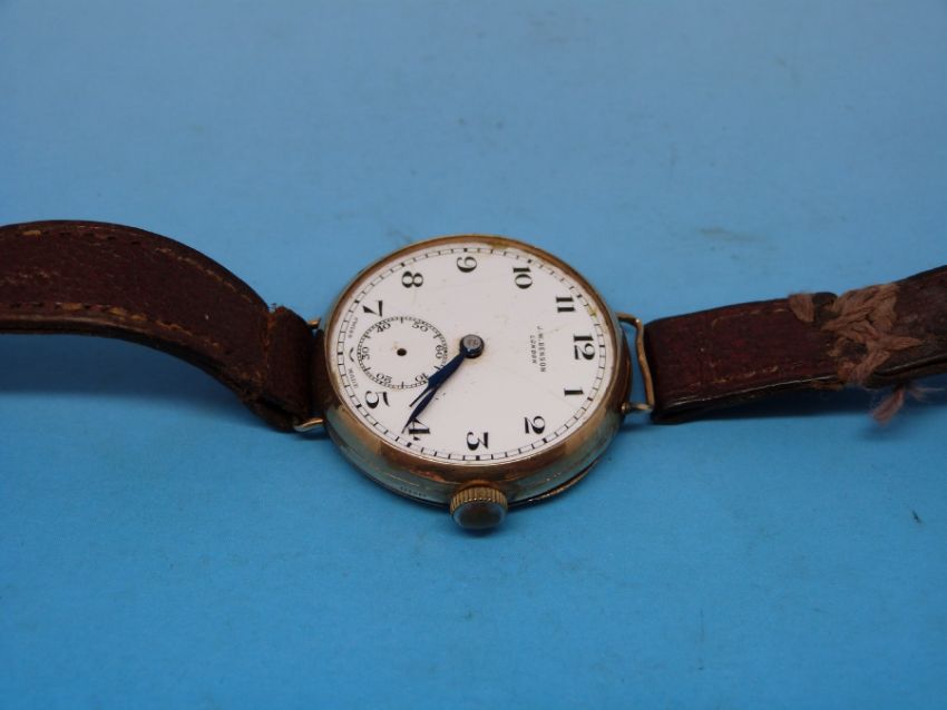 A c1920's J.W Benson gentleman's 9ct gold wristwatch
