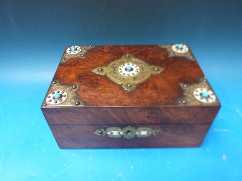 A 19thC serving/workbox with gilt and ivory mounts with cabochons, width 24.5cm