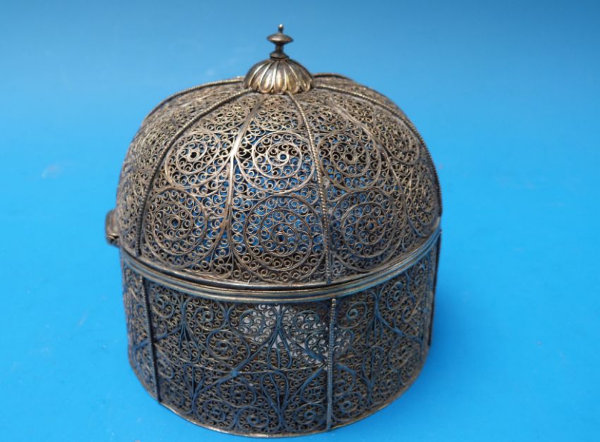 A Turkish/Syrian filigree hinged and domed casket
