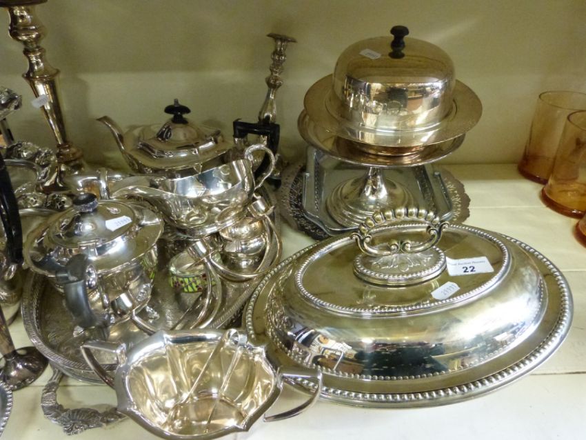 A quantity of silver plate including teaset, trays, entree dishes etc