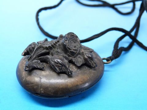 A Victorian boxwood locket with carved flower to the front opening to reveal carved sections
