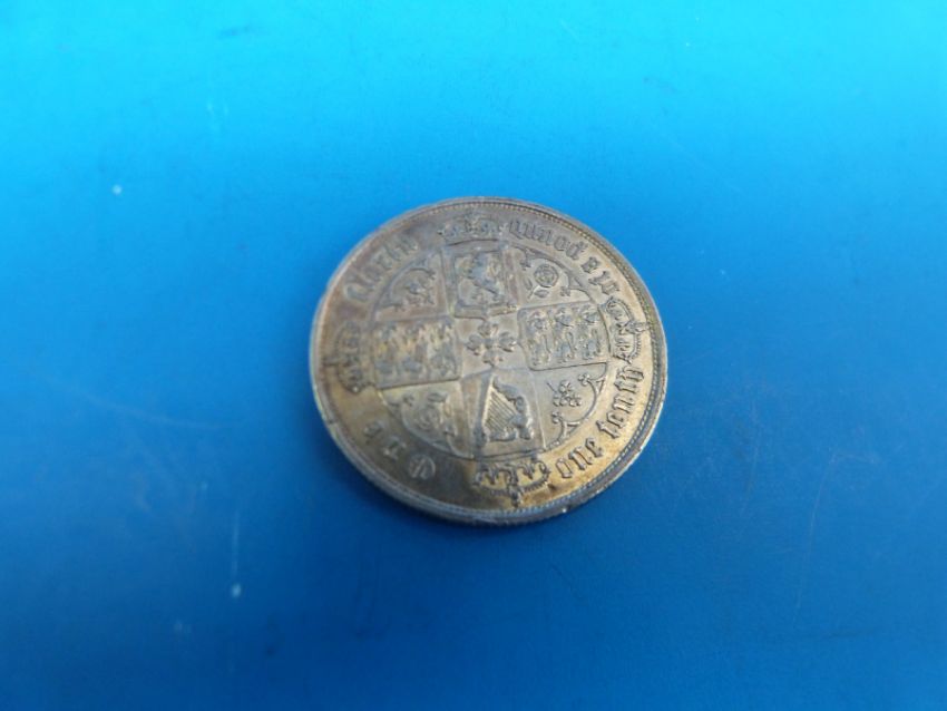 An 1852 Gothic florin type B WW below bust in near EF condition, one small edge nick