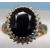 An 9ct gold ring set with a large oval sapphire surrounded by diamonds (size N) PLEASE NOTE THIS IS 9CT GOLD