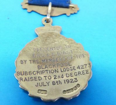 A 1923 Masonic 9ct gold medal inscribed for the Blackpool Lodge (approximately 14g all in)