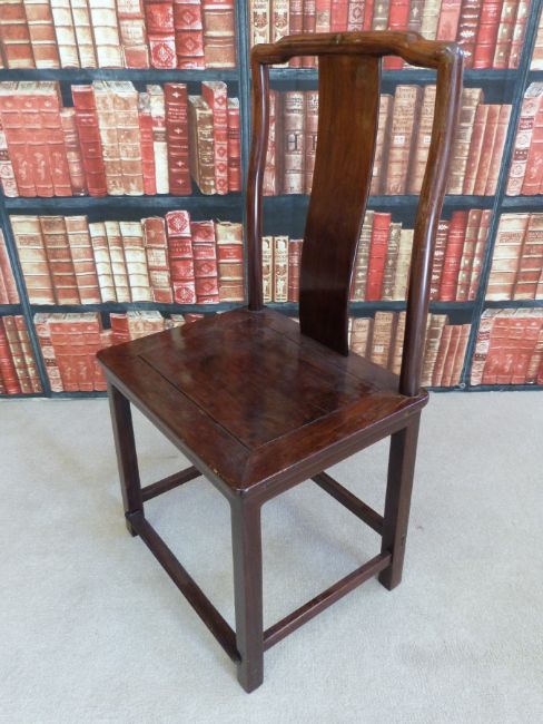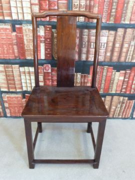 A hardwood Chinese chair with shaped splat back and all round stretcher