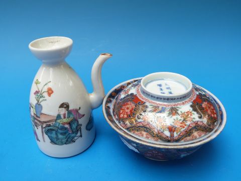 A fine 19thC / 20thC Japanese Imari lidded bowl with faux Ming mark and a Chinese teapot