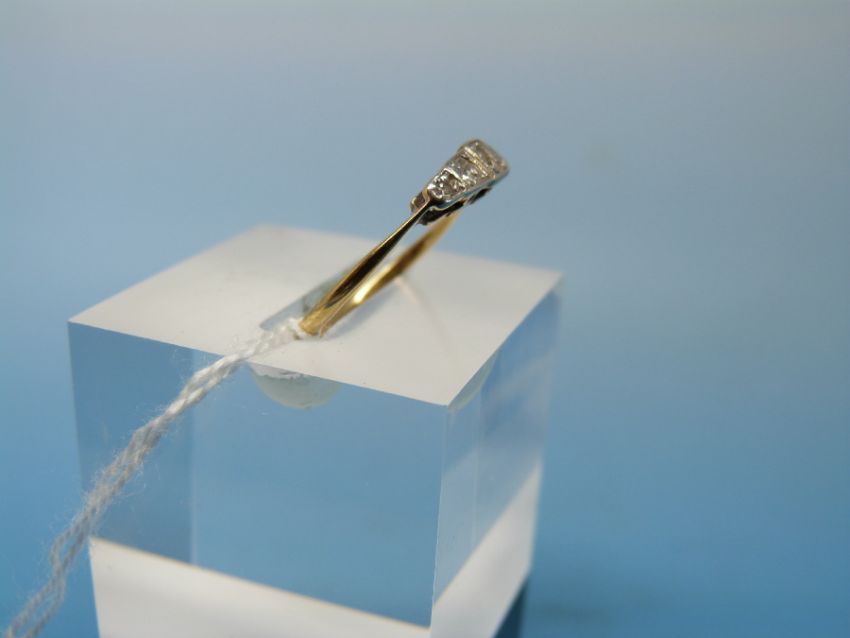 An 18ct gold ring set with five diamonds in a platinum setting (size M)