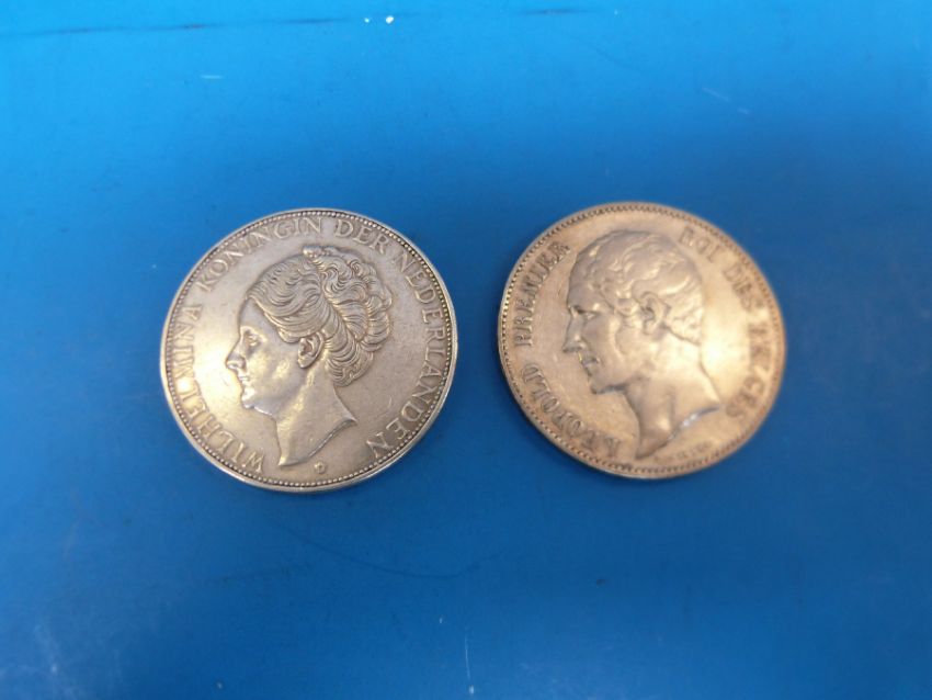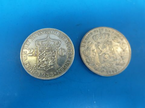 A 1933 Dutch 2½ Gilder silver coin together with an 1849 five florin coin