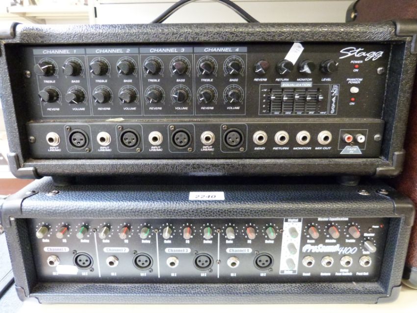 An amplifer and graphic equalizer with pair of torque speakers on stands
