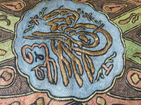 An Ottoman embroidered wall hanging with gold beadwork