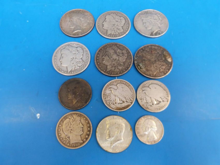 Six USA silver Morgan dollar together with a quantity of other largely pre-1965 USA silver