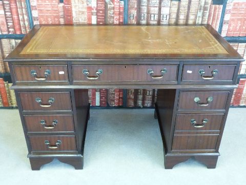 A twin pedestal desk with leather inset top (W122 x D61 x L78.5cm)
