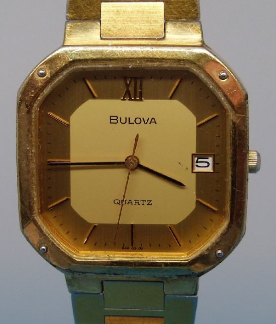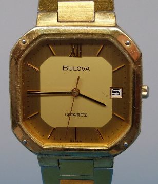 A gentleman's Bulova quartz wristwatch with date aperture.