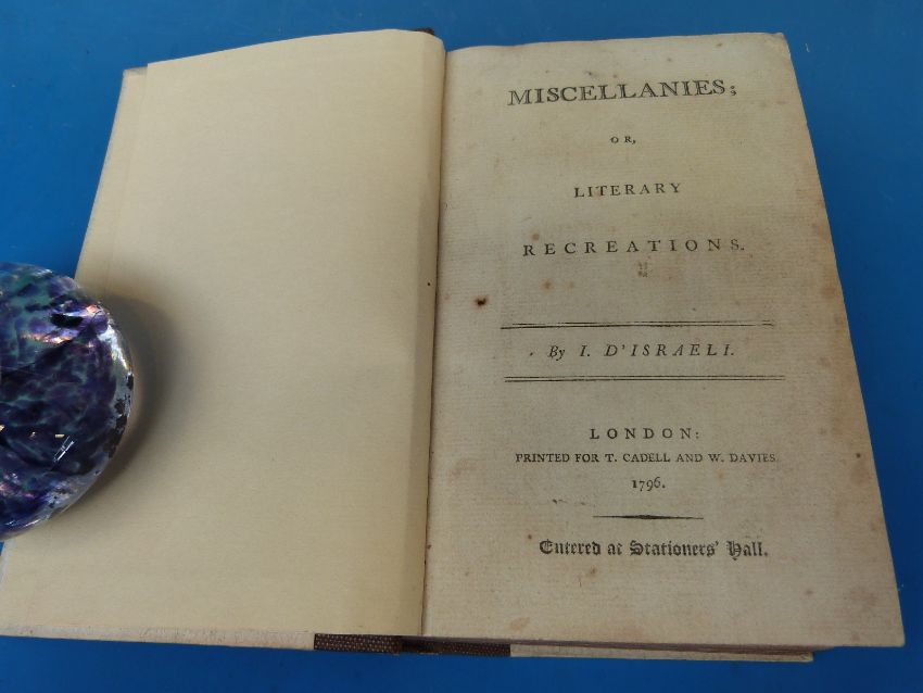 John Galt, 'Sir Andrew Wylie, of That Ilk' Edinburgh, William Blackwood (1822) quarter leather (three volumes); William Hamilton, 'Lectures on Logic', (four volumes), Edinburgh, William Blackwood (1860); plus Isaac D'Israel, 'Miscellanies, or Literary Reactions' (1796) first edition, rebound.