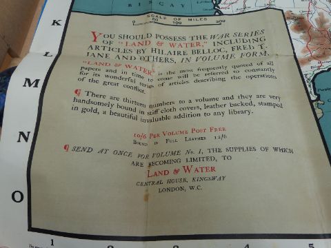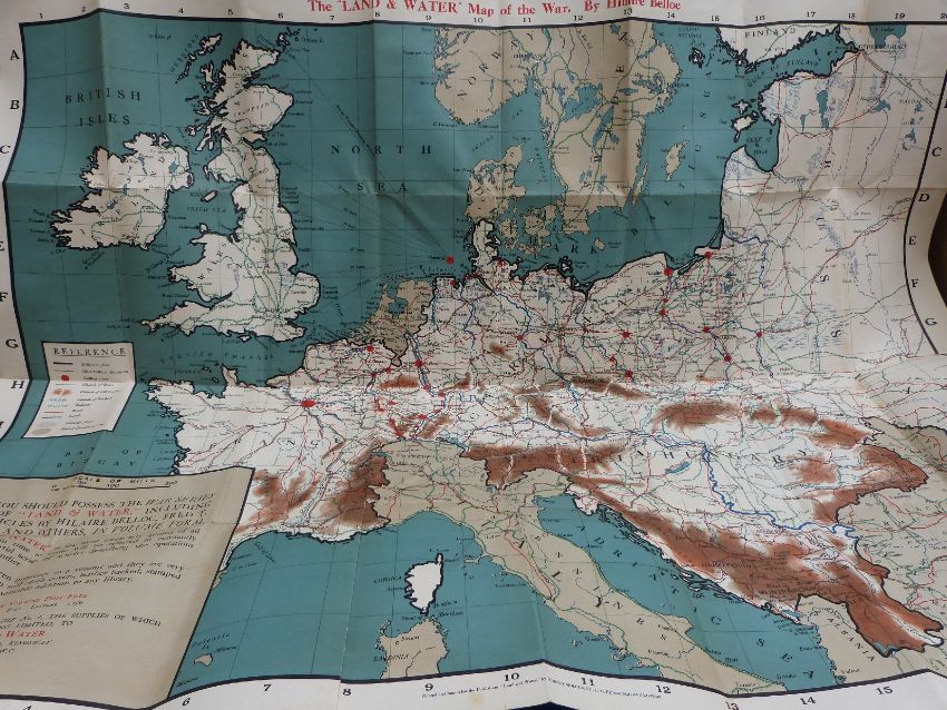 'Map of the War' drawn under the direction of Hilaire Belloc for 'Land and Water', Map of First World War theatre mounted on linen, bound in cloth and complete with introduction