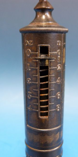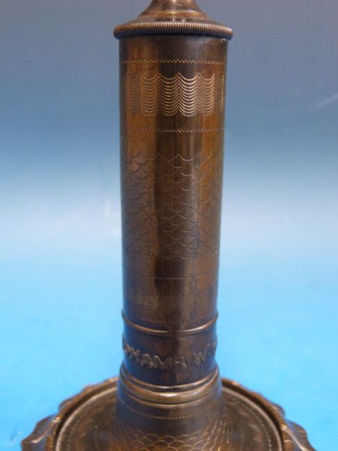 A W. Winfield candlestick type letter scale engraved with fish scale and scroll decoration, on cast base