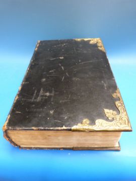 The Universal Family Bible or Christian's Divine Library by The Rev Henry Southwell, with full leather brass bound boards and original receipt for £13