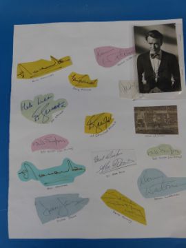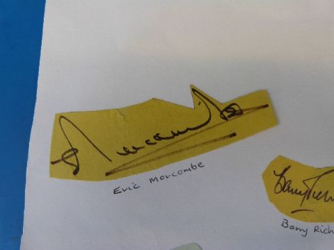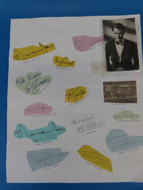 A quantity of signatures to include Eric Morecambe, Dickie Davis, Bill Simpson, Dennis Waterman and others mostly cut from an album
