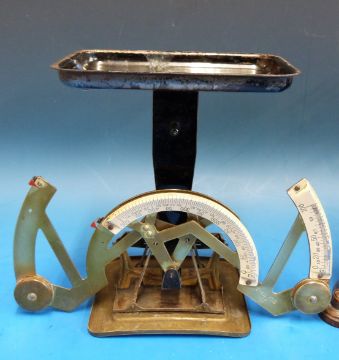 A twin scale Bilateral scale, calibrated up to 500g together with a similar set and a Salter letter balance