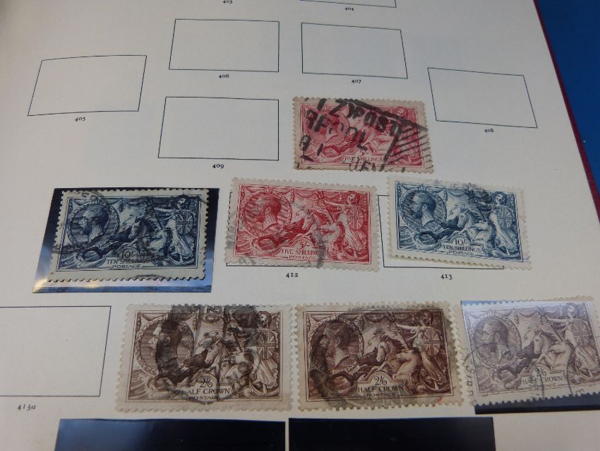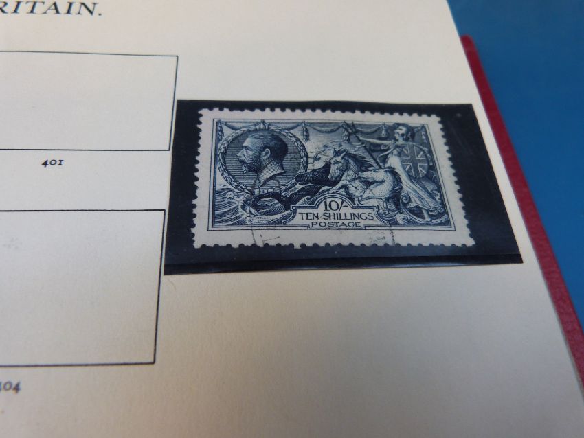 An extensive collection of Great Britain stamps 1940-1984 in a Windsor album. Early stamps include 1d black (three), 2d blue, 1d red plate 225 (clear numbers), Embossed Issue (five), 1/2d rose red plate 9 (clear numbers), 1867 S1-rose (two), 1883 high values 2/6d-10s, 1888 £1 brown-lilac (S.G. 186), a mint pane of 20x4.4d mint (S.G. 206), 1887 £1 green (S.G. 212), Seahorses including 10s-blue (three), 1929 £1 black (S.G. 438)