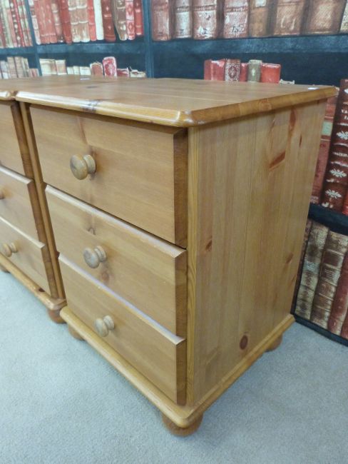 A pair of pine bedside chests of drawers (H58 x W44 x D38cm)