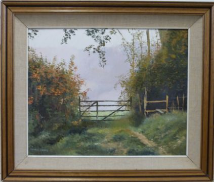 Pamela Derry: Framed oil on board 'Parting of the Ways', signed bottom left (39cm x 45cm)