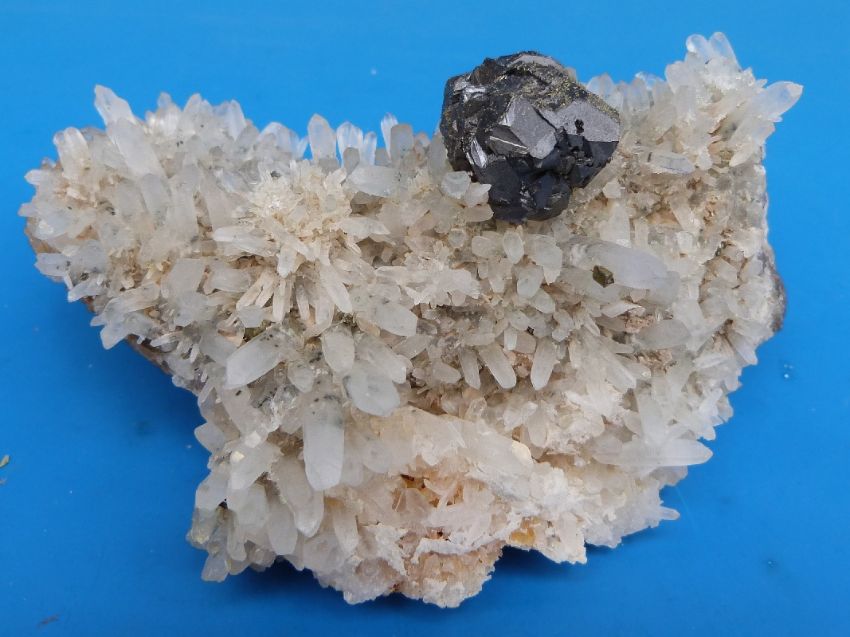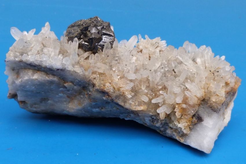 A small geological sample formed of small crystals with large grey sample within, approximately 9cm long