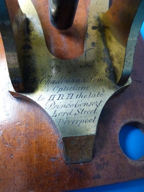 A Chadburn & Son microscope marked 'Opticians to HRH the late Prince Consort' microscope in case with lenses etc