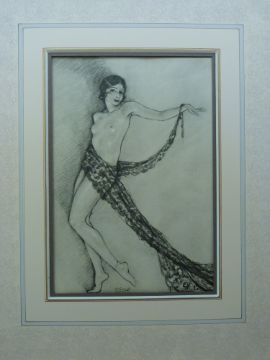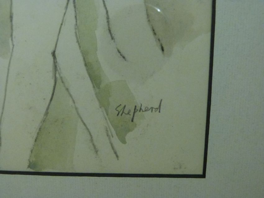 A watercolour of nudes signed Shepherd together with a Chimot Art Deco nude print (30cm x 22.5cm)