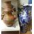A Tiffany style table lamp together with an oriental style vase lamp and two large decorative vases