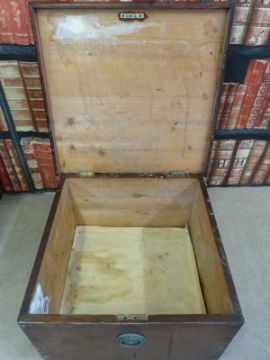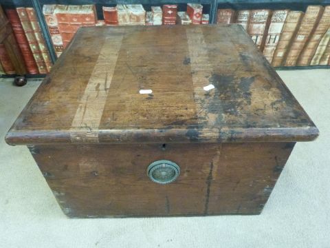 A small stained pine bible box (approximately 53cm square)
