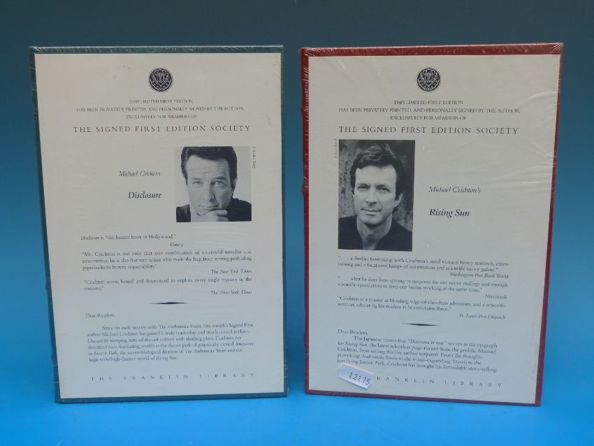 Michael Crichton 'Rising Sun' and 'Disclosure', both signed by the author. Limited first editions, Franklin Library. Full leather, gilt edged pages and spine, both shrink-wrapped
