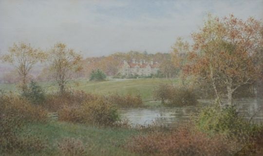 Charles Gregory (1849 -1920): Watercolour of large house within a river landscape, signed (41cm x 59cm)