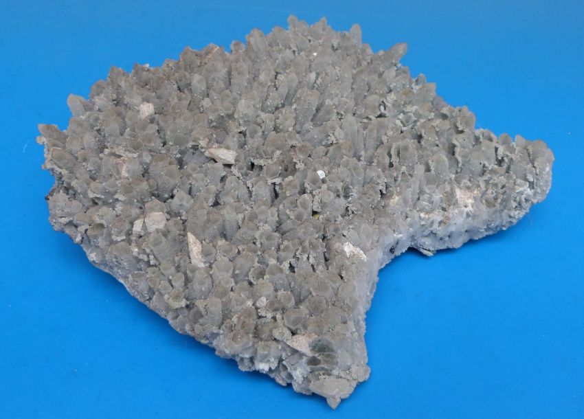 A very large grey geological sample of quartz with opaque crystals, approximately 18cm long