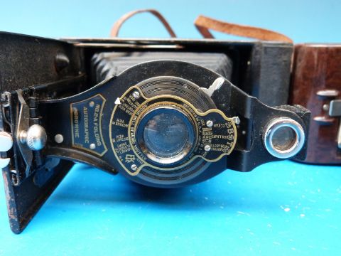 A Bakelite no.2 Hawkette cased c1930 camera, together with folding autographic 'brownie' (in case with original booklet)