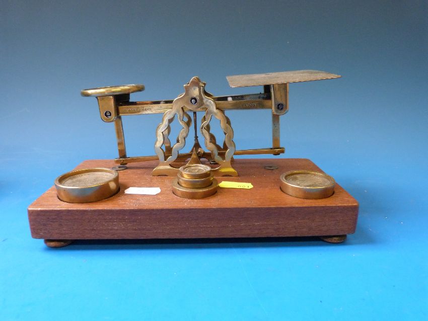 Three sets of 19thC letter scales, two S Mordan & Co, the other with burr wood base with inlay edge
