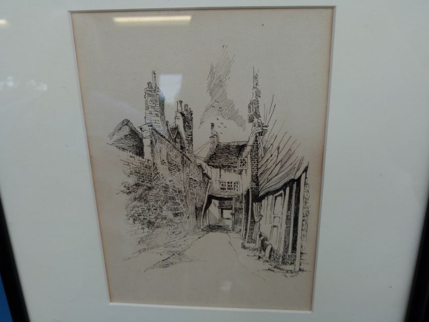 Two pen and ink drawings of street scenes both monogrammed TC and dated 1922 and 1923