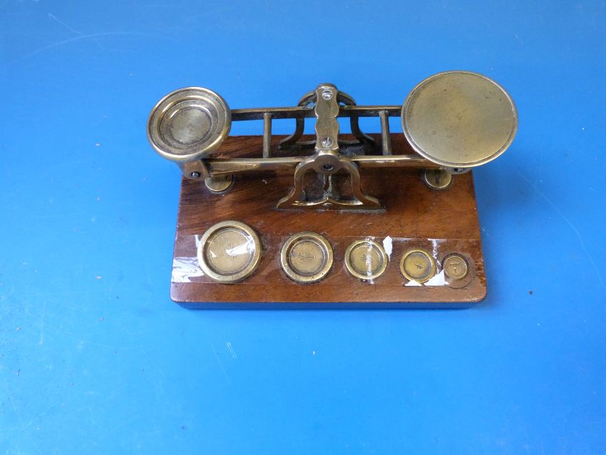 A set of Mordan & Co postage scales with weights to base