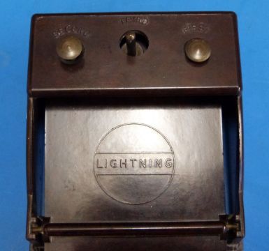 A Bakelite lightning egg grading scale with buttons for first, second and third