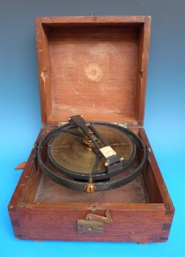 A cased C H Bianchetti & Cie Marseilles brass gimballed surveyors sighting dial/compass