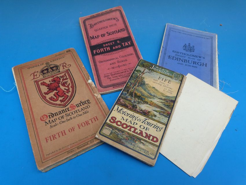 A collection of titles about Scotland, particularly Edinburgh to include 'Edinburgh and its Story', illustrated by Herbert Railton (London 1904), blue octavo with gilt spine and cover, a collection of cloth-backed maps (Fife and the Firth of Tay) and D.Hay Fleming, 'Handbook of St.Andrews' (new edition)