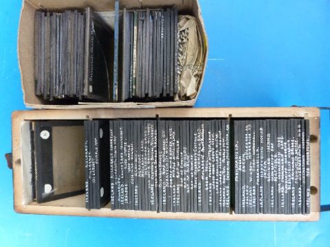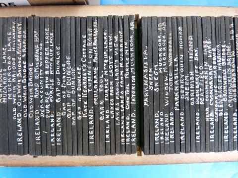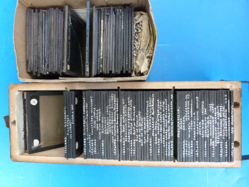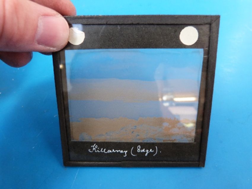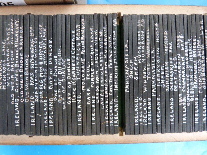 A collection of slides of Irish views to include Ross Castle, Old Wier Bridge, Ireland lakes etc together with another box of slides of Devon