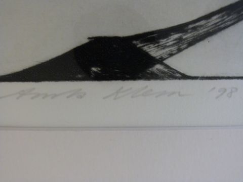 Anita Klein: signed artist proof etching of a man and woman in bed reading and her partner with a camera lens (30 x 38cm)