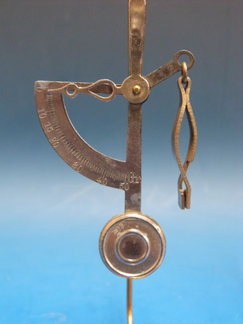 Two sets of pendulum type letter scales, one marked Jos Illfelder, both on brass display stands
