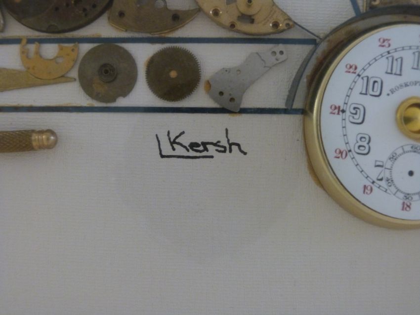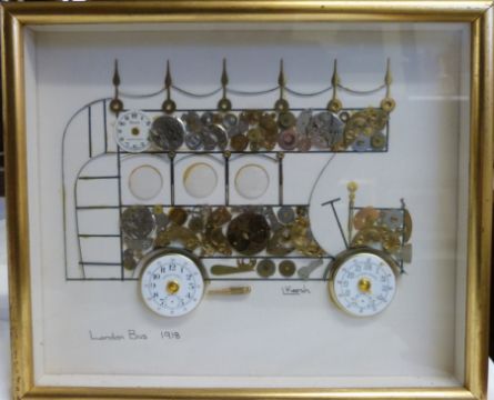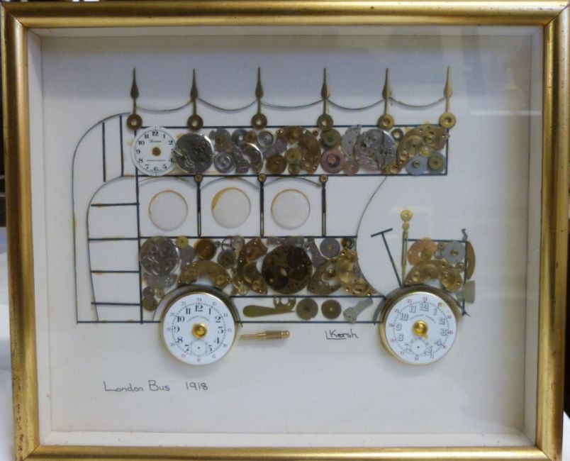 L Kersh watch parts montage depicting a London bus 1918 (27cm x 30cm)