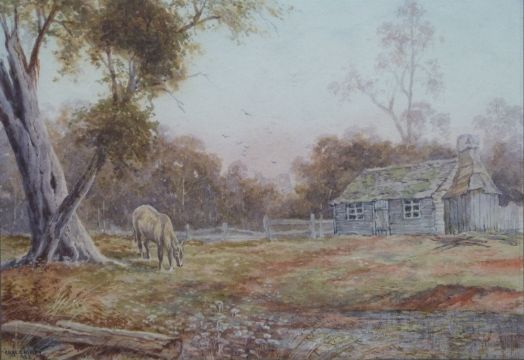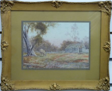 A pencil/wash of boys in a rowing boat indistinctly signed possibly W Rainey (14 x 21cm)together with a Chas E Astley watercolour of a possibly Australian farmstead(17.5 x 25cm)