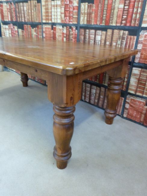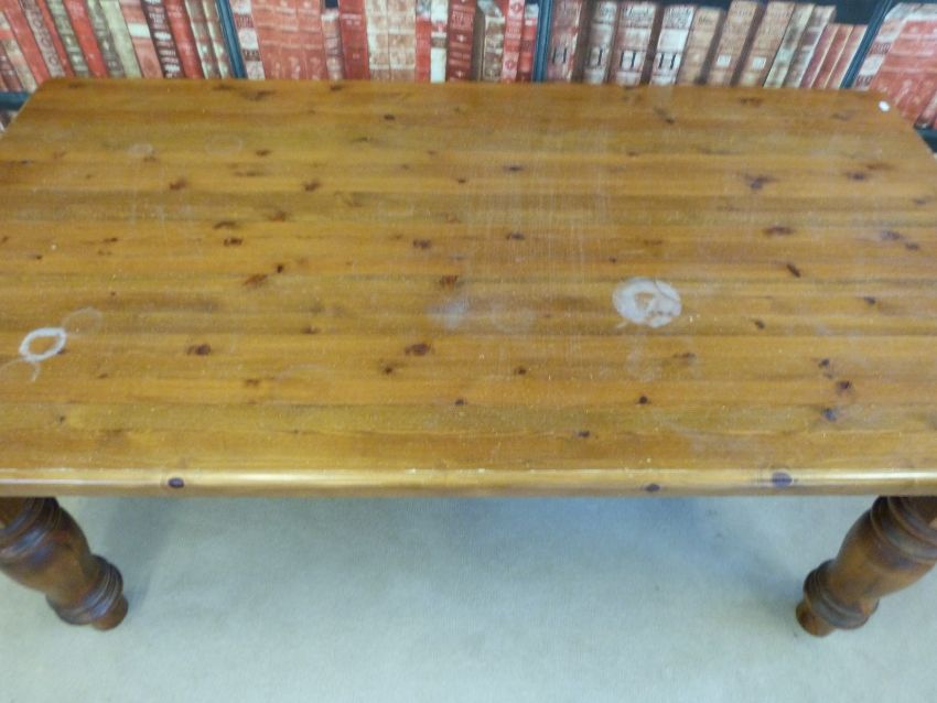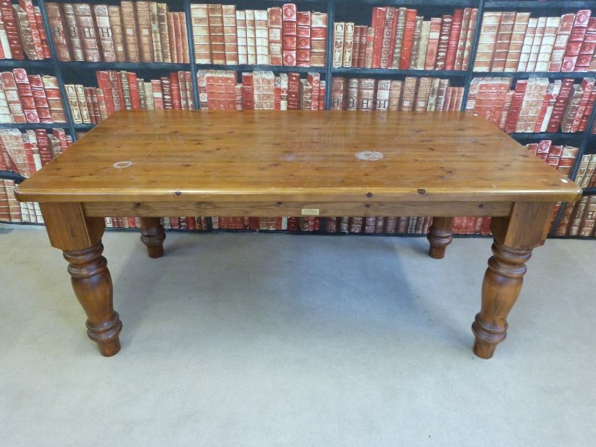 A Cotswold Collection pine kitchen table with substantial turned legs (L183 x W98 x H80cm)
