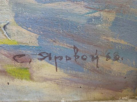 Stefan Yarovoi: Oil on canvas of a girl feeding chickens in a village, signed and dated lower right (70cm x 74cm)