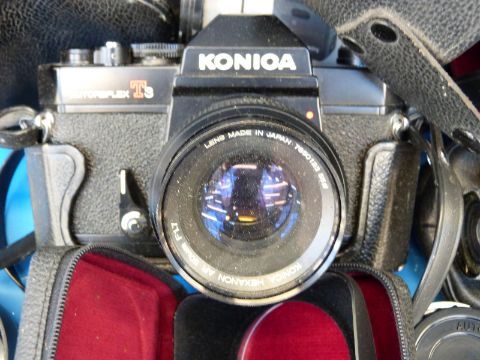 A Koniflex Autoflex T3 camera, Koniflex Zoom Hexanon AR80 - 200mm F3 5 lens, further lenses and accessories and an Olympus-Pen camera