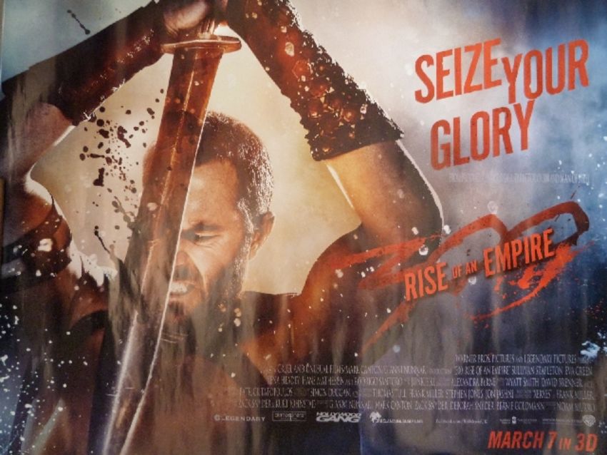 Seven cinema posters for Hunger Games, 300 Rise of an Empire, Elysium, Pacific Rim, GI Joe 3D, Texas Chainsaw Massacre 3D and Jack Ryan